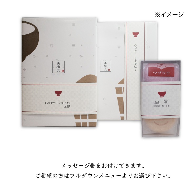 熨斗、メッセージ帯、メッセージシールの中からどれか一つだけお付けできます。複数選択されていた場合、熨斗→帯→シールの優先順位で一つだけお付けしてお送りいたします。