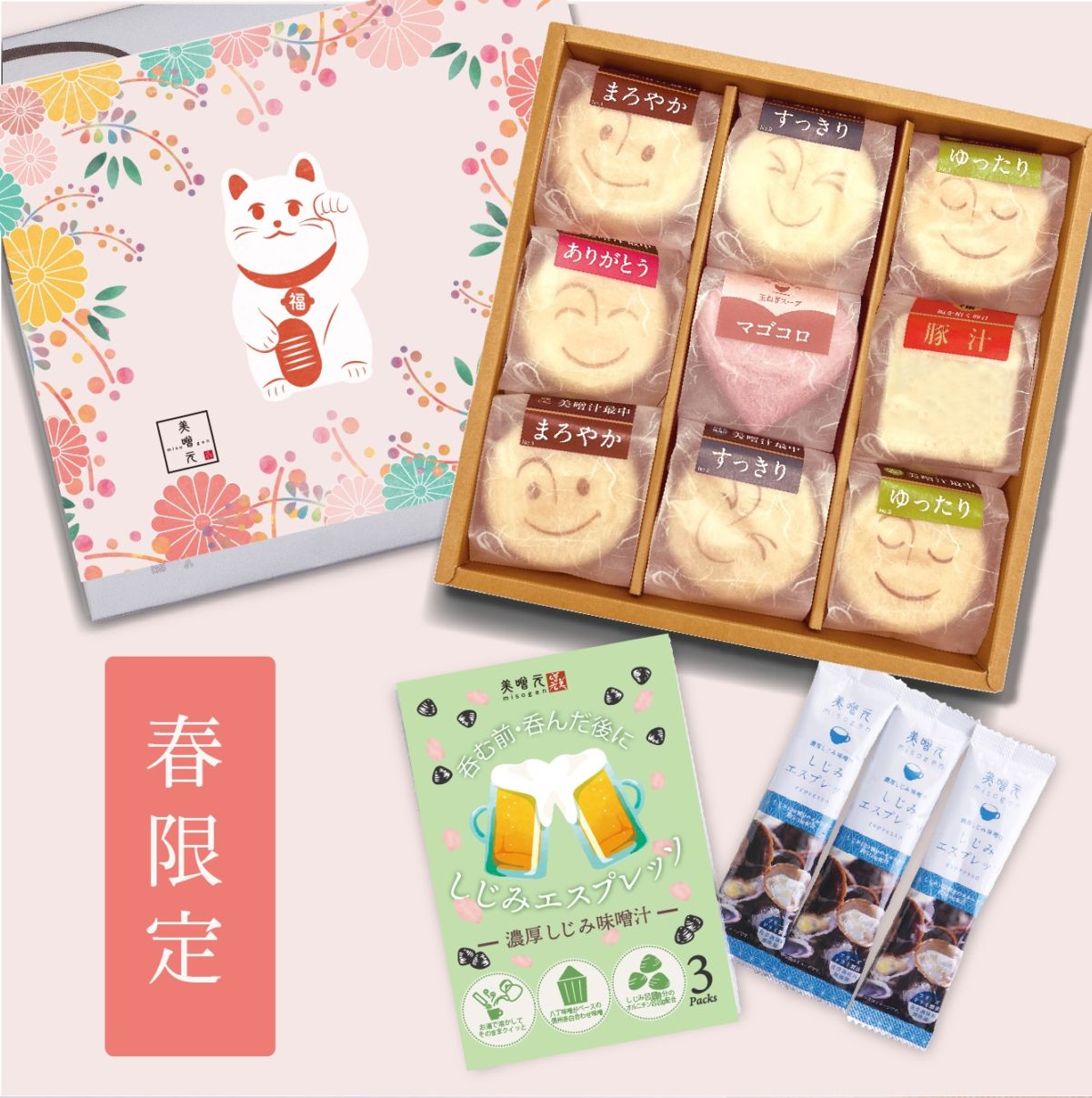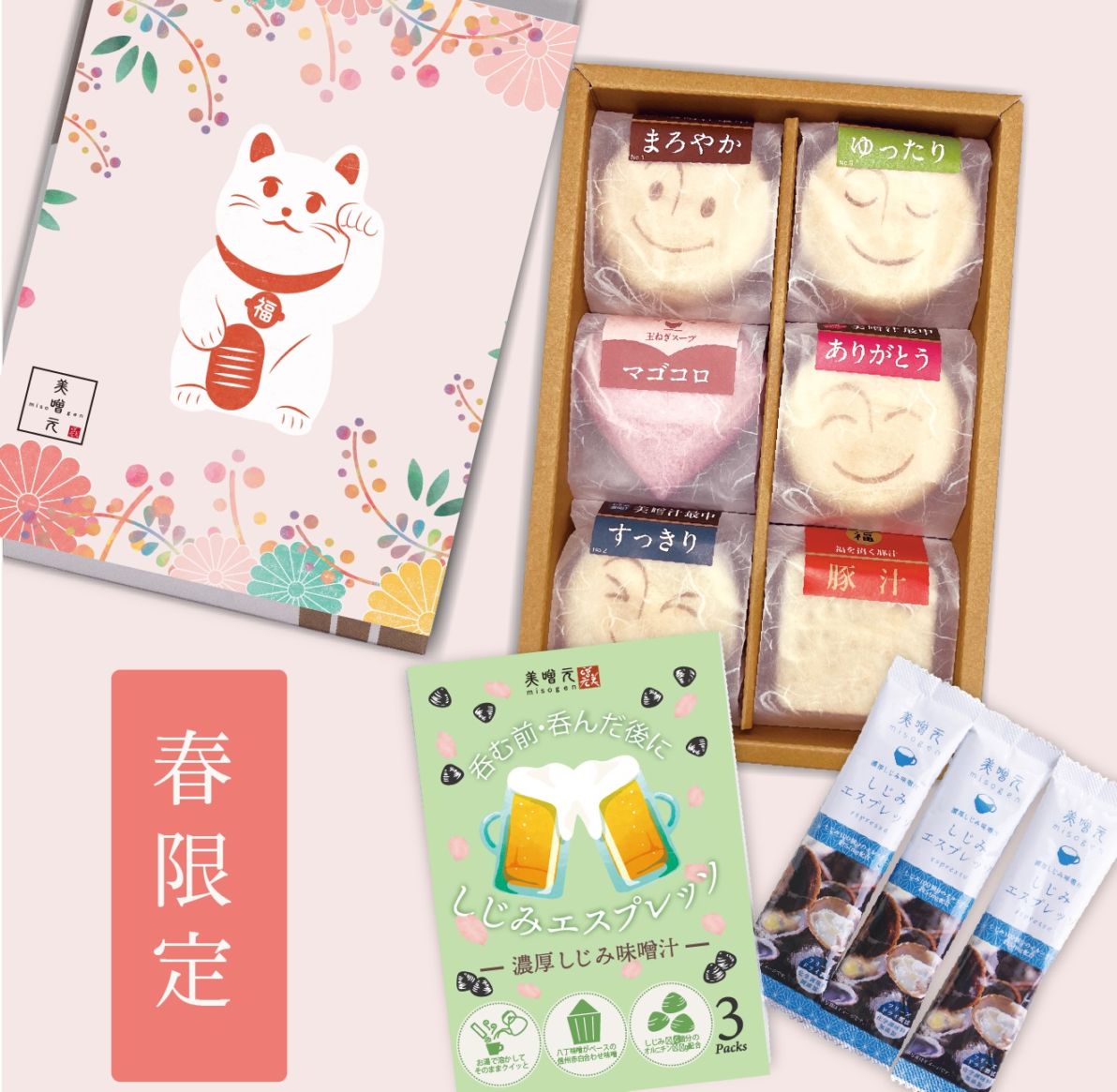 | 詰め合せ内容 | 美噌汁最中 ありがとう×1個・マゴコロ×1個、すっきり×1個の計3個を紙のケースにお入れします。 |